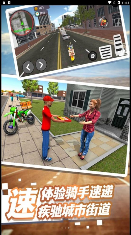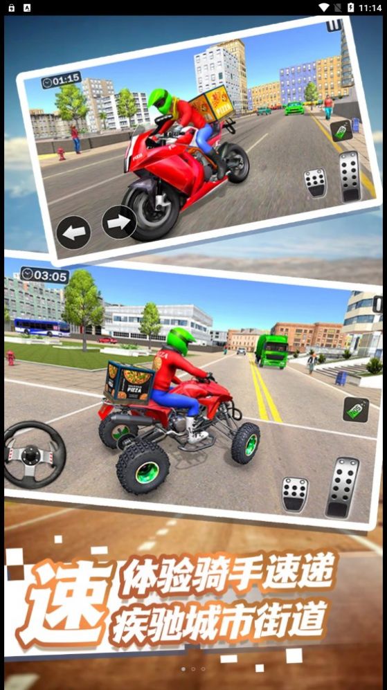 外卖终极狂飙手机版里面的驾驶快感真的是非常的多,在你上线之后会得到的驾驶感受绝对是相当的过瘾。进入到游戏里面之后大家会成为一个外卖员,你要做的就是驾驶自己的驾驶器在城市里面不断的送外卖,你的任务就是第一时间将外卖送到顾客的手中。