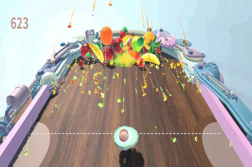 2、借助物理的作用来将水果扔出去,在屏幕之中自由的滚动。