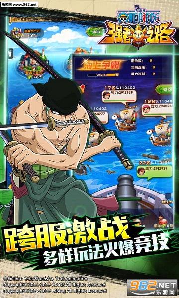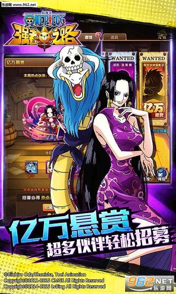 One Piece动画正版授权手游《航海王强者之路》扬帆公测今日火爆开启,和小伙伴们一起,为梦想呐喊!超强红卡登场,超强战力等你招募!跨服激斗,赢取属于海盗强者的荣耀!海岛争夺,公会对决火力全开!更有宠物等多样玩法火热开放!航海王动画经典还原,热血战斗等你加入!出发吧,成为我的伙伴!