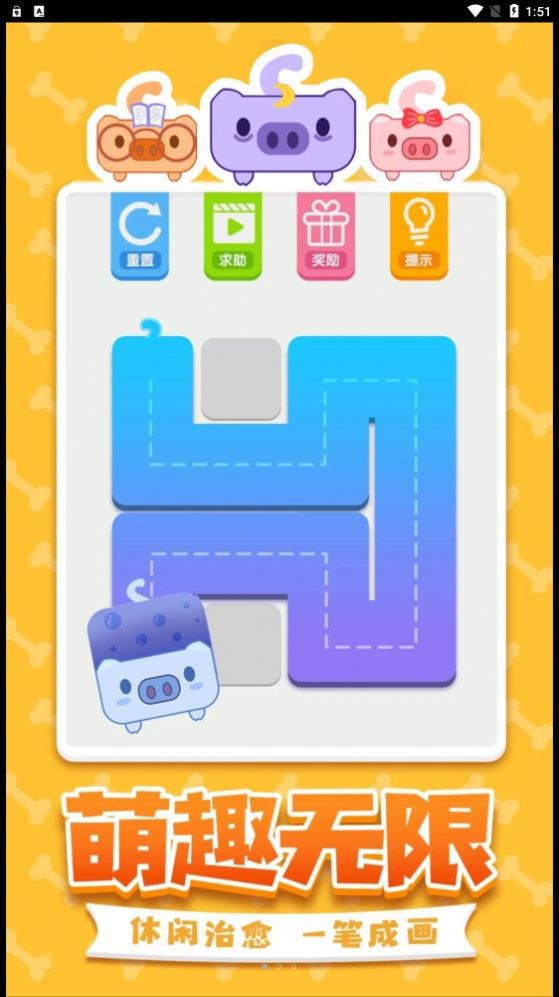 一笔画完猪猪游戏安卓正版是款很不错的画线休闲游戏,对应的游戏关卡不断解锁开启,这里还会有很多好玩的游戏太欧战等待你来玩,轻松无比的游戏关卡,后续的一些冒险等你体验,一场场挑战等待开启,游戏关卡很多,画线闯关趣味多都!