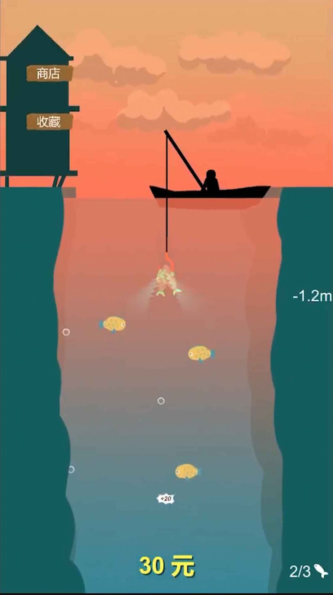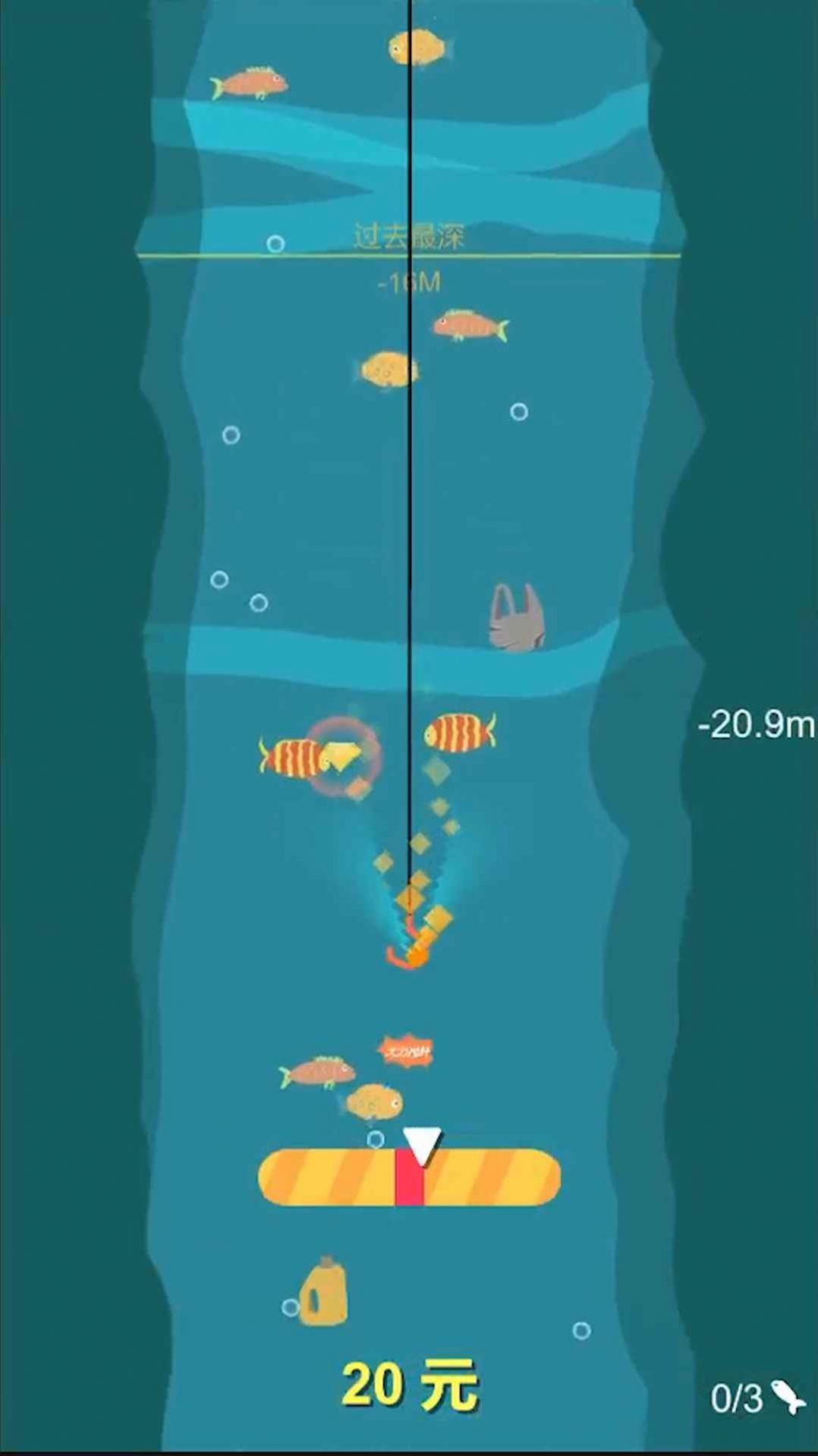 2、游戏还有许多的道具,游戏时可以使用道具,来延长自己的钓鱼范围