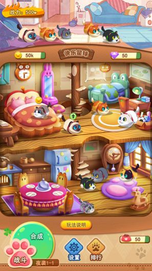 3、既可以购买道具装饰猫窝,也可以尽情闯关,登顶排行榜首,收获超多的奖励。
