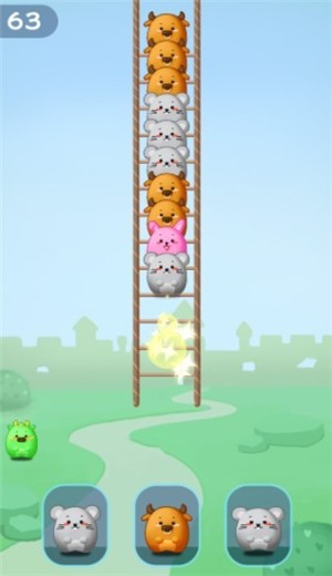 2.只要将同类型的动物完成排列即可完美的解决,丰富的游戏内容让玩家去体验,将关卡中的不同种类的角色全部都解决掉,收集各种各样的道具。
