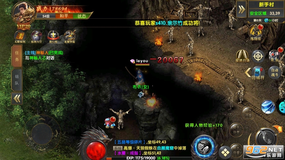 自动挂机战斗,工作睡觉都能够轻松打怪升级。多余装备,一键回收,绝不浪费!