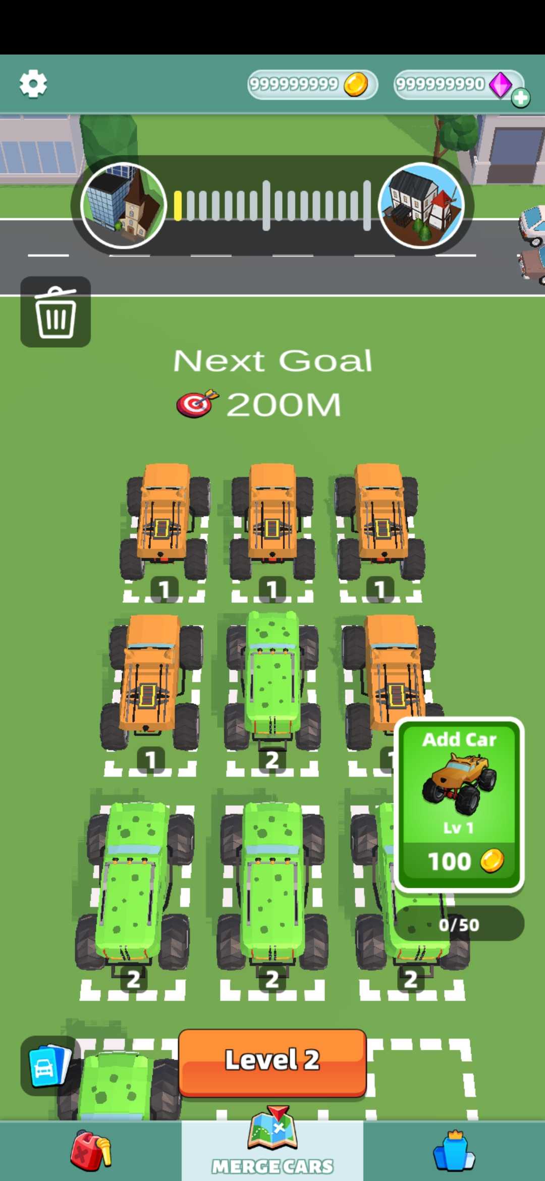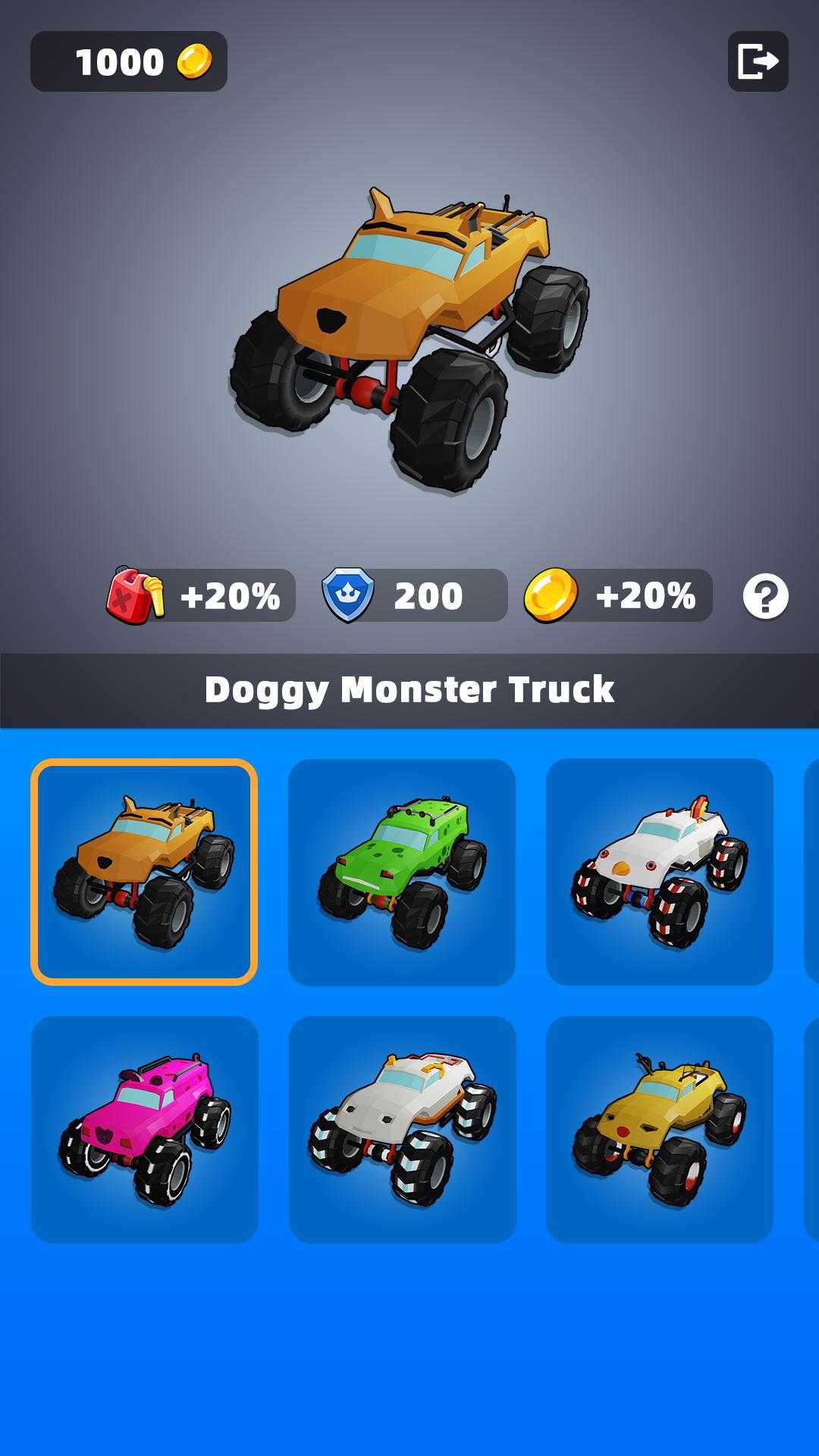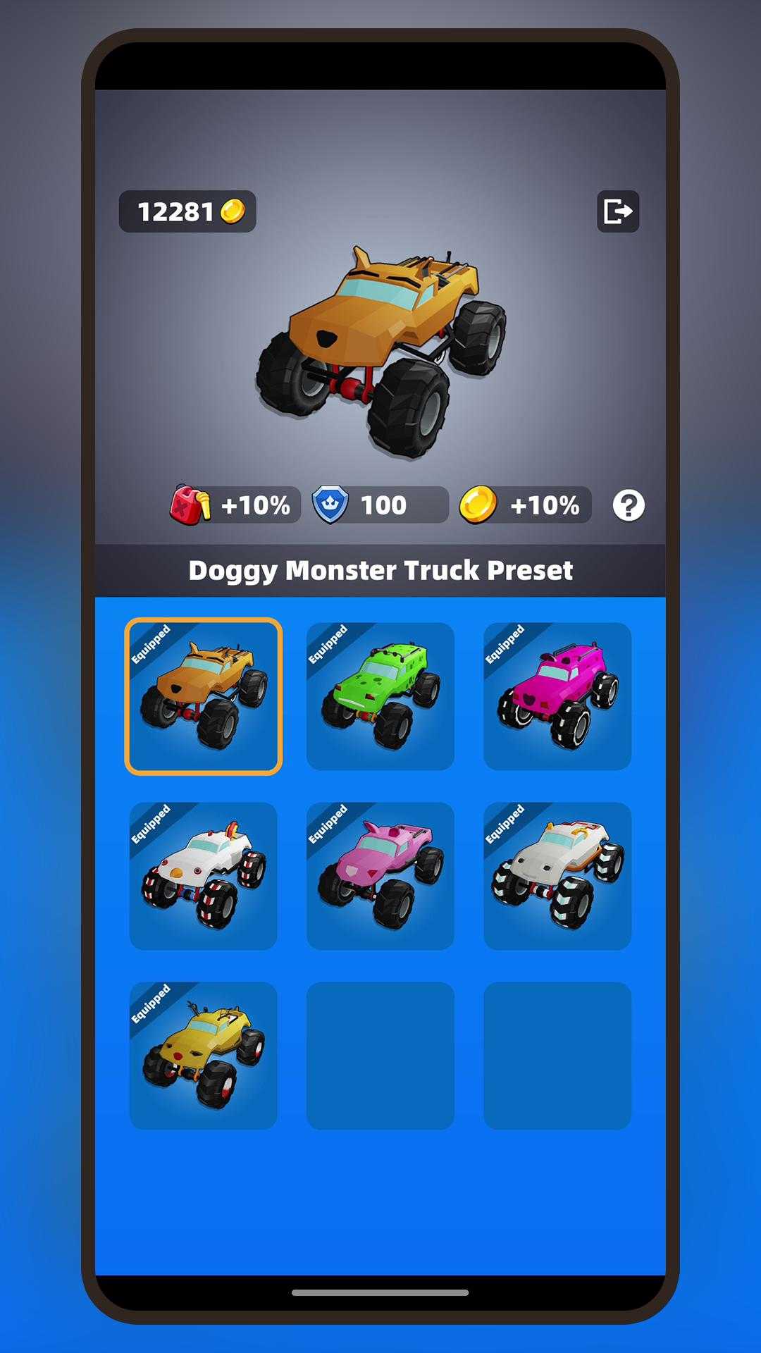 3、收集更多的怪物卡车,合并相同的车辆,获取性能更好的怪物卡车。