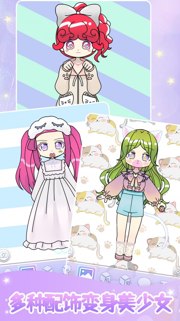 创建自定义角色,自定义肤色,发色。海量精美的单品装饰。