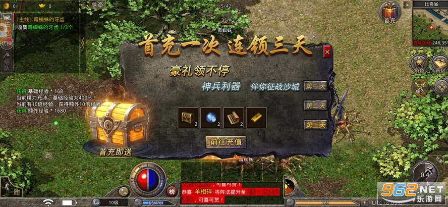 3、上线就送满级v、元宝、金币、绝版时装套装,不容错过哦;