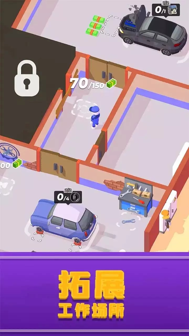 2、消耗金钱就可以解锁更多的经营空间,扩展你的汽修厂的业务。