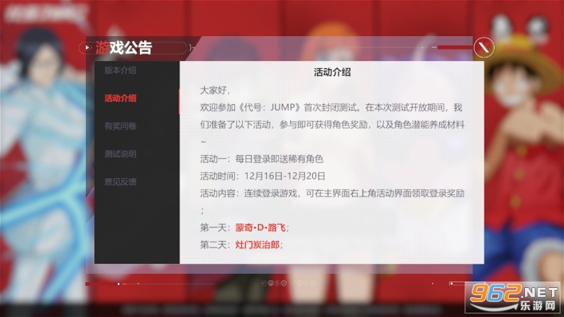在上海蛙扑新游戏代号jump中,你能够见到几乎所有你熟悉的日本人气动漫ip的各名角色,自由选择招募组建成为你心中理想的阵容,参与到乱斗或是主线的副本剧情故事当中,都是一种极为不错的选择,喜欢的话就不要犹豫,赶紧来下载体验吧!
