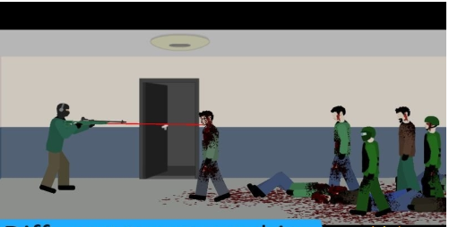2.在游戏中,玩家要面对周围的僵尸军队,拿起你唯一的武器射击僵尸的头部!冲出包围圈,防御僵尸!拿起枪杀死每一个来的僵尸!