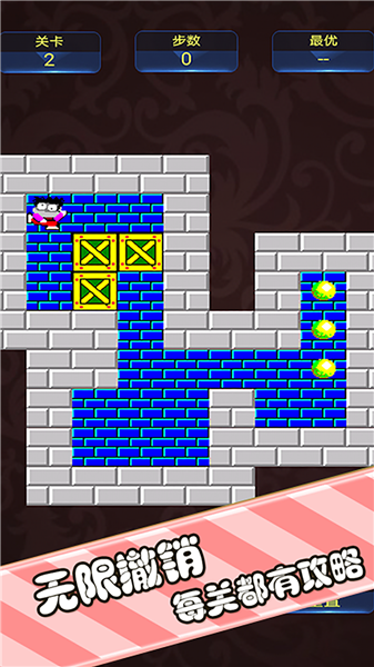 100关推箱子下载是一款在100个推箱子关卡中开始不断挑战的益智解谜游戏,玩家需要通过不断的推箱子开拓一条顺畅的通道顺利到达出口,100个不同的关卡挑战,难度逐步增加,必须在规定的推箱步数内完成才能通过考验,比较考验玩家的思维能力,简单又不失乐趣,非常适合打发时间游玩。