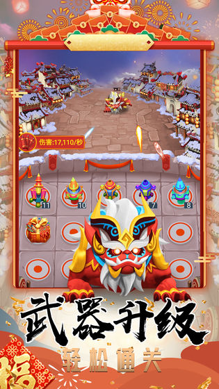 2.通过鞭炮获得收益,解锁并收集五福卡片,来一起对抗年兽。