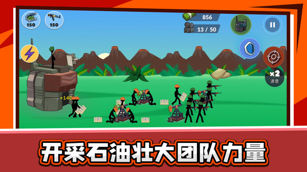 1、经典火柴人主题的动作冒险游戏,解锁不同的兵种开始冒险,招募大量的队友;