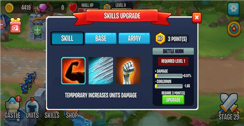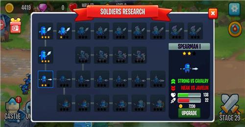 与此同时还可以升级兵种的等级和武器,使每一个兵种之间的配合更加默契,就能轻松地战胜更多的敌人。