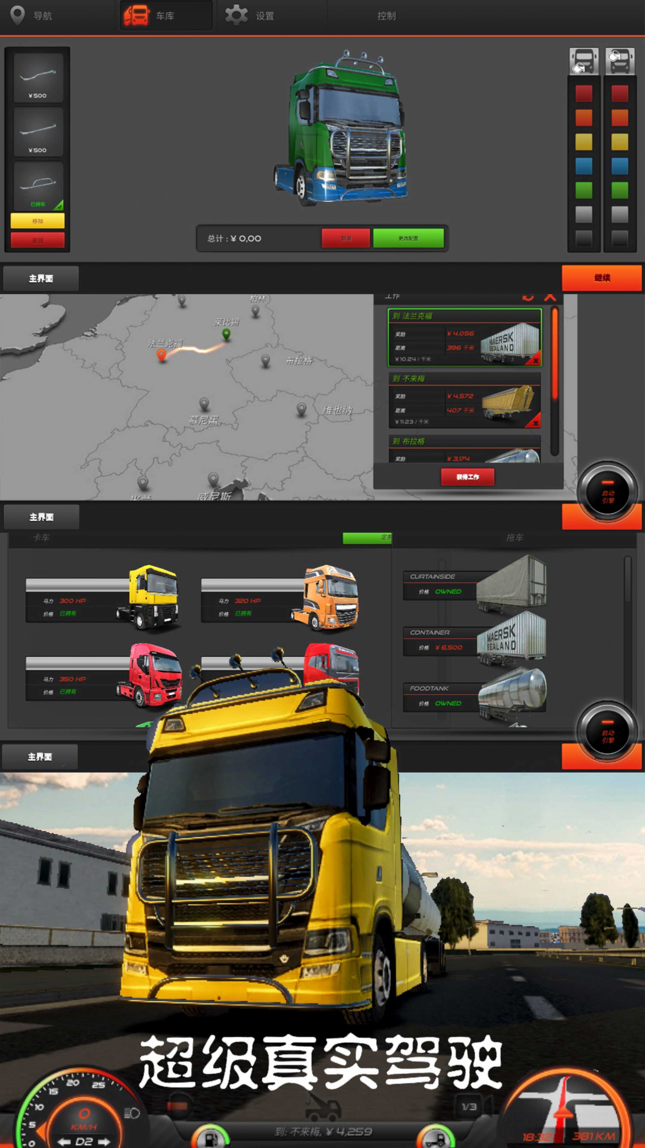 3.尽情来享受你的卡车驾驶之旅吧,努力完成更多的卡车驾驶任务吧。