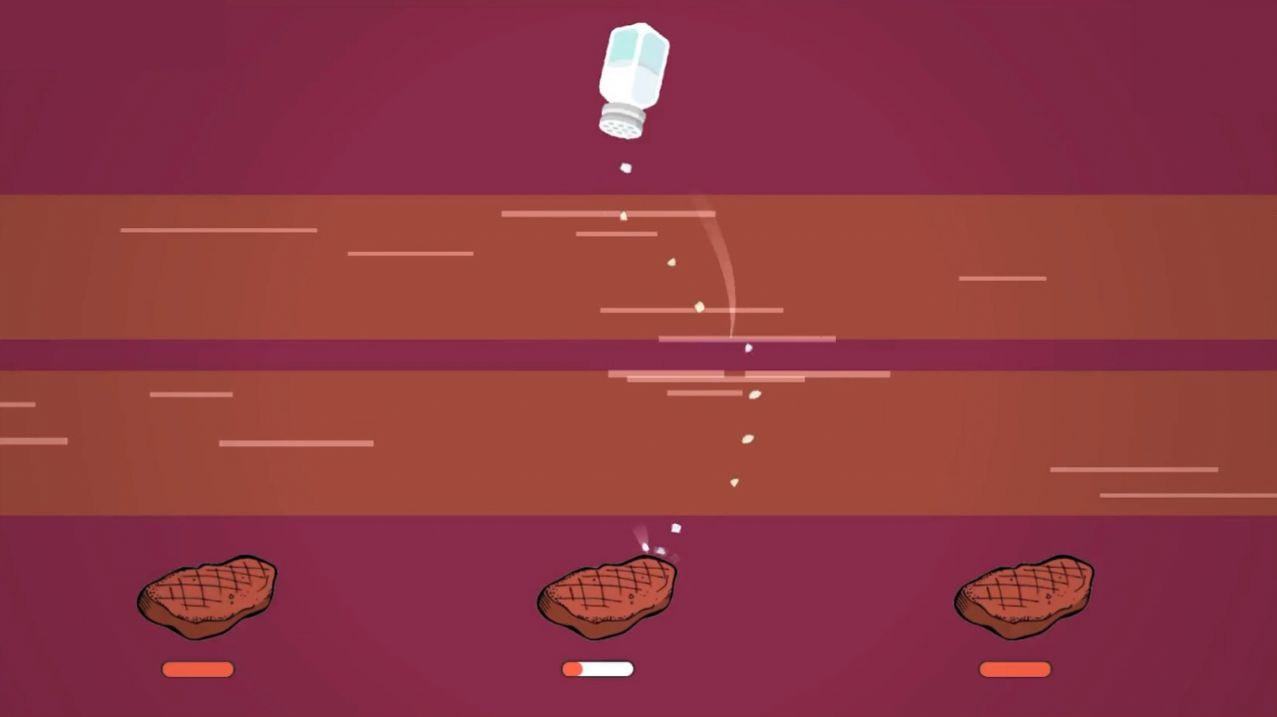 1、玩家们的任务就是需要将盐洒在牛排上,只有这样才算是成功。
