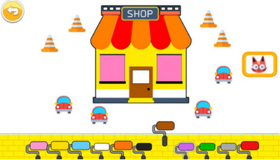 小小粉刷匠,11支大彩笔,配合儿童发音,让宝宝轻松画出和识别颜色,各种卡通建筑、卡通别墅、卡通花园洋房,等着宝宝来上色,游戏很简单,玩家可以选择自己喜欢的颜色来为建筑上色,游戏中有大大小小的建筑,每个建筑都有不同的奖励,建筑越大,玩家获得的奖励就越高。
