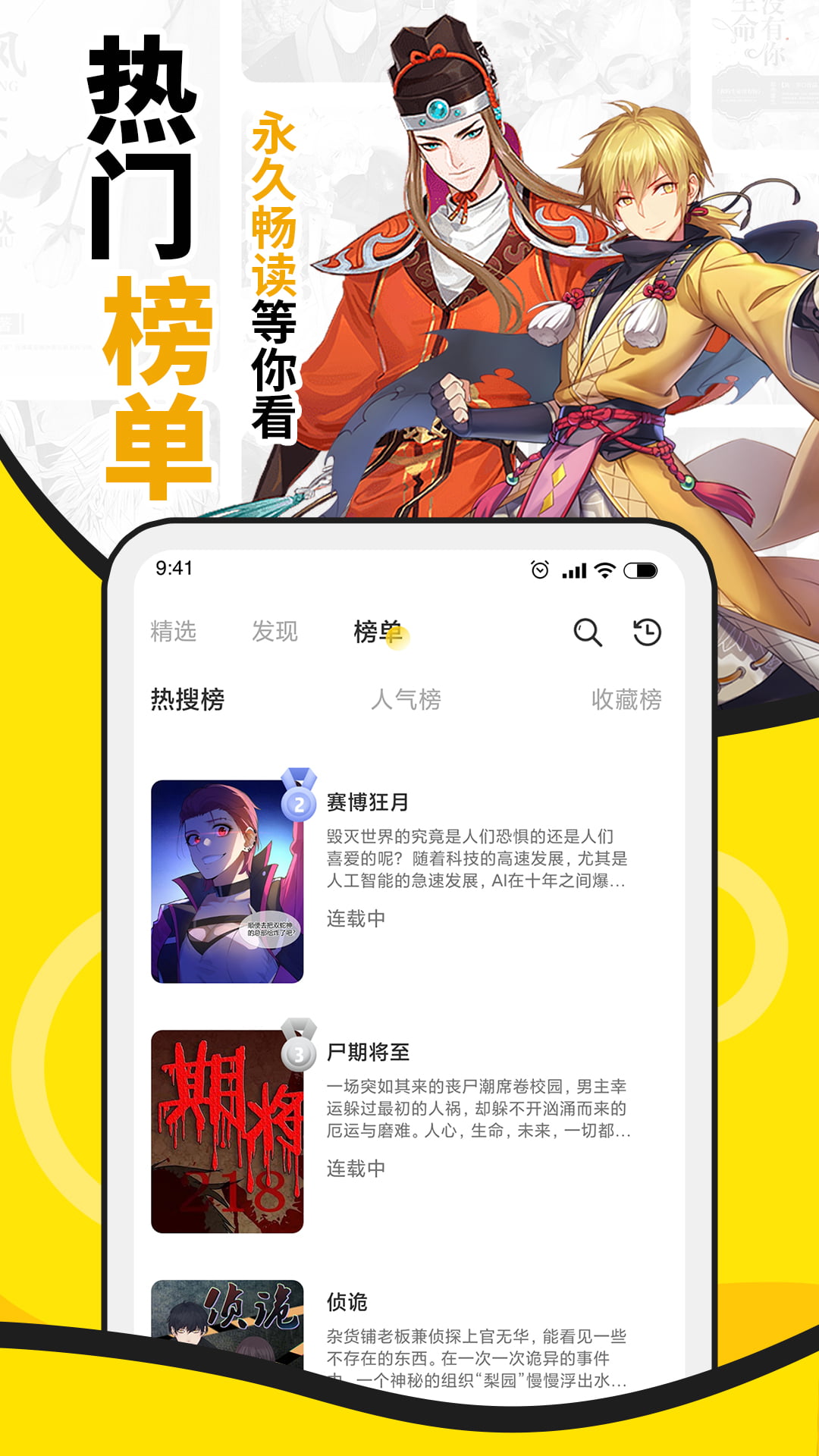 5.榜单名次排行查找,实时浏览到热门排行前首漫画