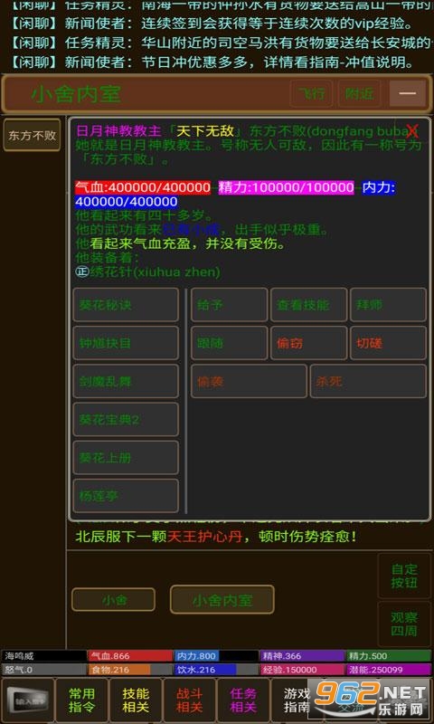 5、纯正的武侠文字mud,遵从经典武侠世界观的设定,游戏中的武侠设定原汁原味的还原我们所熟知的热血武林,还原热血的江湖