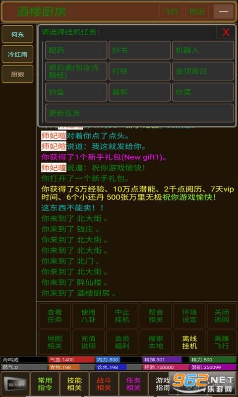 江湖积分可以在师门商城换取各种道具 这样你就算步入江湖了,主要的经验获取途径就是师门任务,忙的时候也可以在【扬州】的【醉仙楼】炒菜挂机,本服这次离线挂机afk系统