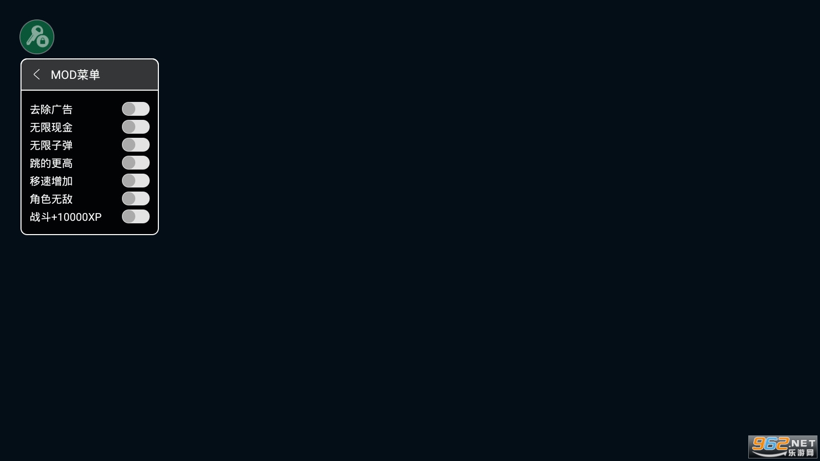 作弊菜单:去除广告、无限现金、无限子弹、跳的更高(游戏内如有卡顿请重新开启此功能)、移速加快、角色无敌、战斗+10000XP。