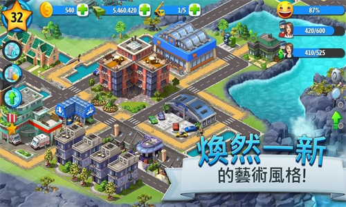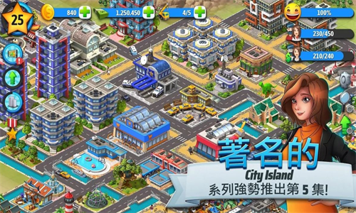 “City Island 5 - Tycoon Building Offliae Sim Game” (岛屿城市5 - 离綫大亨城市建造模拟游戏) 是Sparkling Society工作室的新作,在这款游戏中,你将成为一个小镇市长,在一个岛屿开始建设你的城市。发送你的飞艇去探索世界,解锁美丽的新岛屿,建造你的新城市。在大多数城市建筑游戏中,玩家只管理一个城市,但是在“City Island 5 - Offliae Tycoon Building Sim Game”中,你将把你的地平线和天际线扩展到新的岛屿,每个岛屿都有不同的主题和表面环境,供你建造一个城市。这个城市游戏也可以作为离线游戏玩,所以即使没有网路或没有wifi连接,你也可以建造自己的城市。2、从小镇到城市,再到大都市