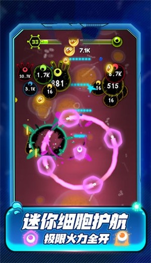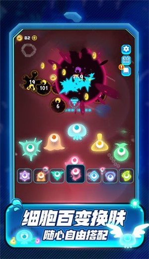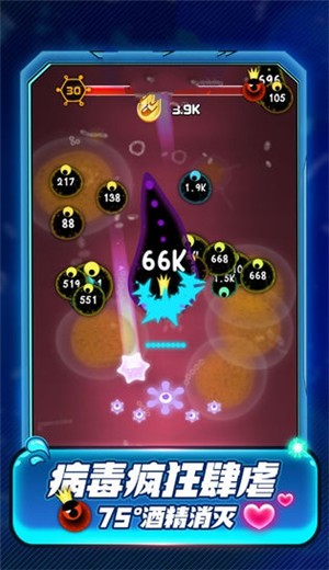 1.只需要通过升级你的细胞也能升级,消灭入侵病人体里面的病毒,让病人恢复活泼。在消灭病菌的过程中玩家能不断的获得奖励,收集加成道具可以增加自身的实力;