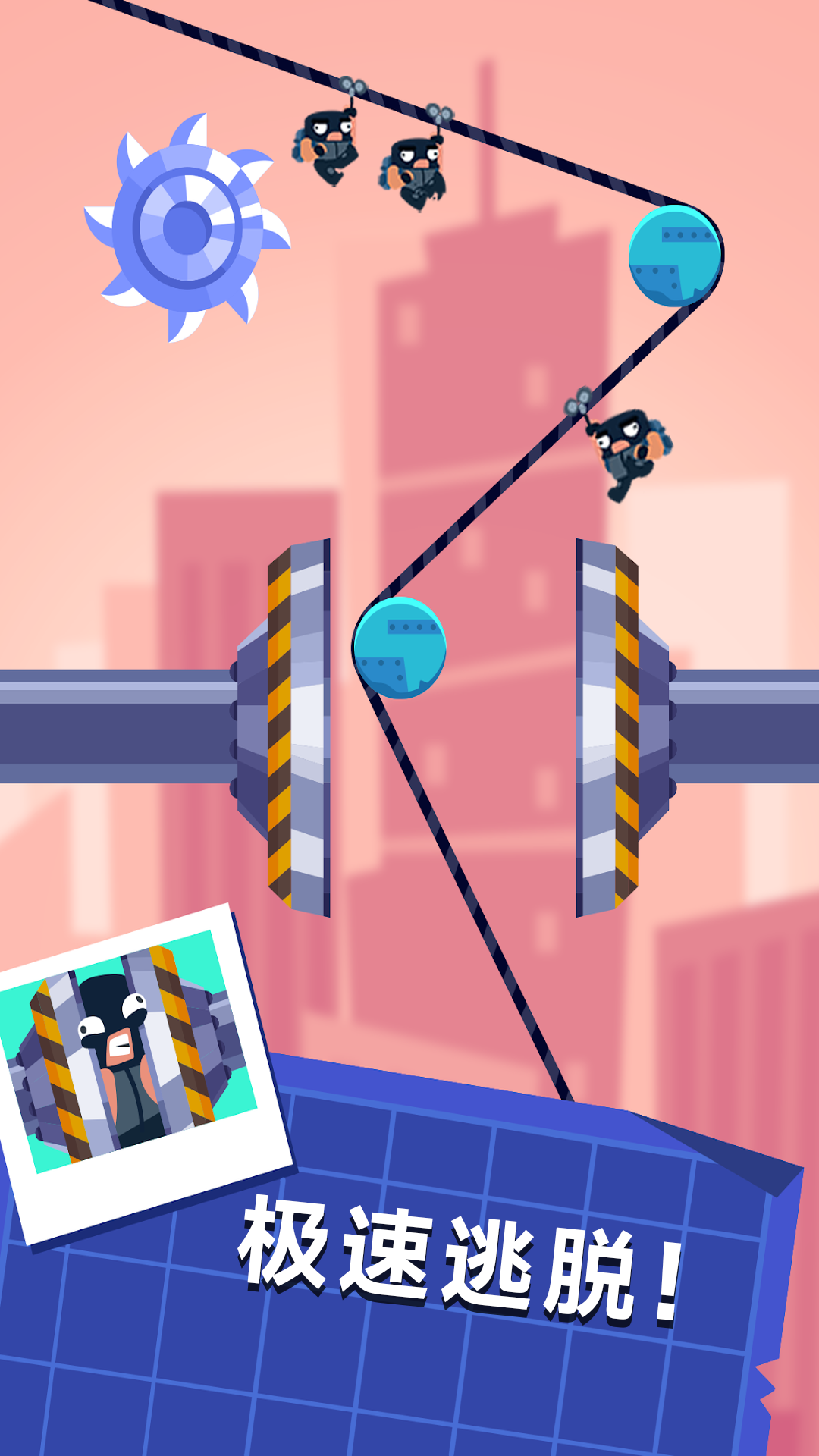 火柴要闯关这款以闯关玩法为主的休闲益智类型的游戏特别好玩,游戏当中呈现出了不同的绳索,需要通过绳索顺利的逃生,同时还要将盗贼快速的抓住,需要通过指尖操控的方式将绳索快速连接起来,这样才能够将盗贼困住,从而让自己的角色顺利的到达地面。