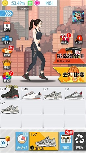 1.人物等级越高投篮越准,你可以通过搭配不同的球鞋来升级自己的角色
