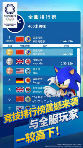 3、带来了超200个丰富关卡供玩家自由竞技,同时新增充满特殊机关的EX竞技,将让你在奥运赛场上感受索尼克的独特魅力。
