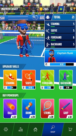 玩家可以选择世界上最著名的网球选手和他们的特殊技能在游戏中与其他选手竞争,有多种模式,玩家可以选择单人、双人或多人模式,游戏规则各不相同,玩家可以完成各种任务来赚取金币。在网球场上获得最高荣誉,成为知名的网球明星选手。
