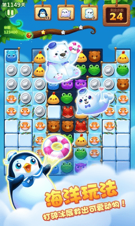 1、滑动手指连接三个或三个以上相同颜色的小动物,即可消去。完成每次通关的指定消除目标即可过关。