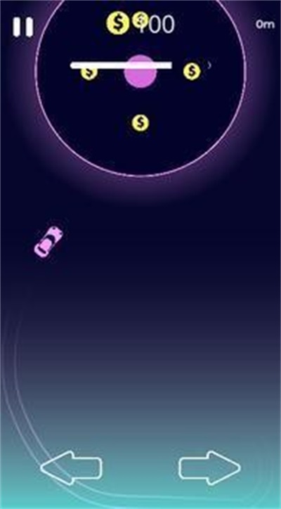 2、控制小汽车在前进途中会遇到很多金币,必须通过装机的方式收集。