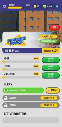 3、想给自己买一个竞技场,您最好升级地板,篮筐和座椅,以加快进度;