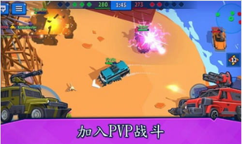 1、随意的选择你的战车,搭配你的武器和凶残的敌人来一场实力的较量和生存战斗。