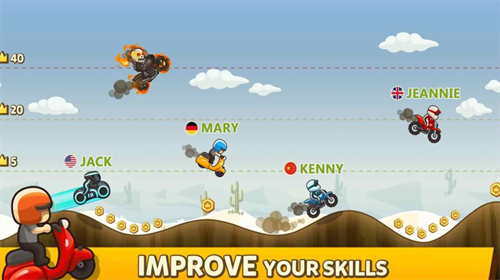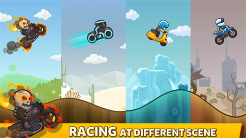 1、玩家在游戏中将会是一名优秀的摩托赛车手,你将会在各种赛道进行刺激的比赛