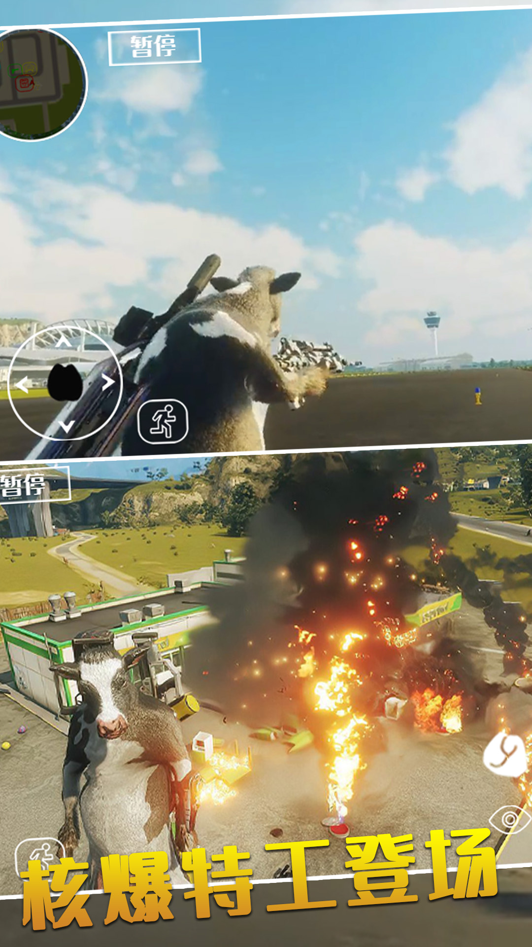 动物冒险派对模拟游戏是一款让玩家化身为一只充满勇气和智慧的奶牛特工、携带各种枪械武器进入战场执行各类战斗任务的射击冒险游戏。在这个游戏里,你将扮演一只经过严格特训的牛特工,在一座神秘岛屿上履行各种任务。你需要使用各种枪械武器,从手枪到机关枪,从瞄准镜到手榴弹,来完成各种战斗任务。