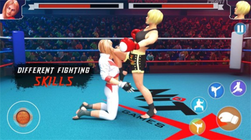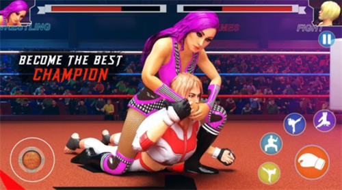2、各种创新技巧和众多动作将为您带来激动人心的摔跤体验。