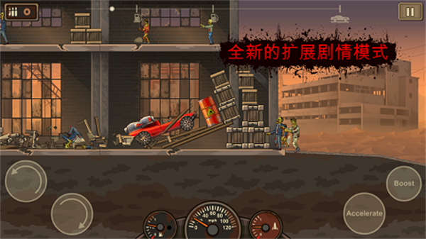 5、你需要不断地击中僵尸,从而使车辆能够走得越来越远,为你带来了更犀利的场景带入感。