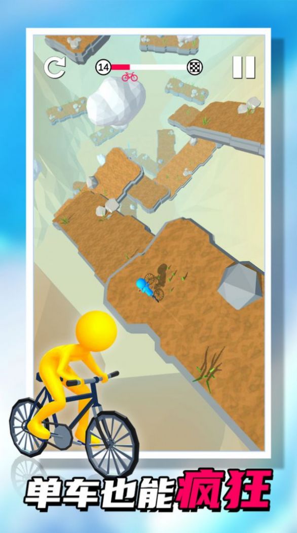 1、玩家使用小自行车在不同的崎岖的道路上进行各种挑战,感受独特骑行比赛的刺激体验。