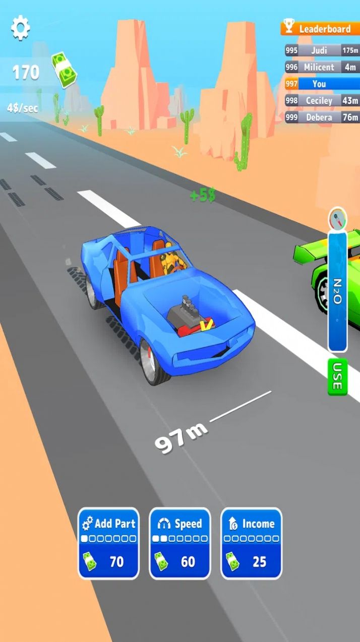 1.玩家还可以通过花费金币升级自己的赛车引擎,获得更快的速度和更好的操作手感。