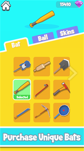 1.球棒通过购买可以解锁各种不同类型的球棒,球棒不仅外观不同并且还有各自不同的属性;