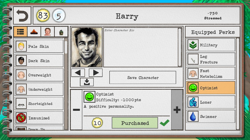 4、角色创建:选择一个预制角色或通过选择确定您的身心特征、技能和起始条件的特权来创建您自己的角色。