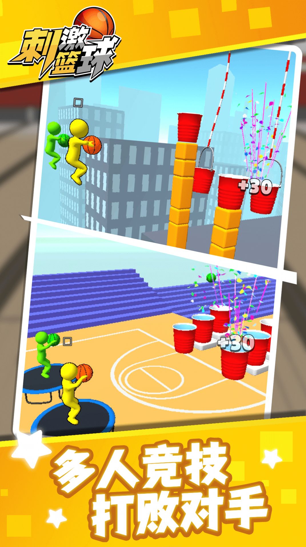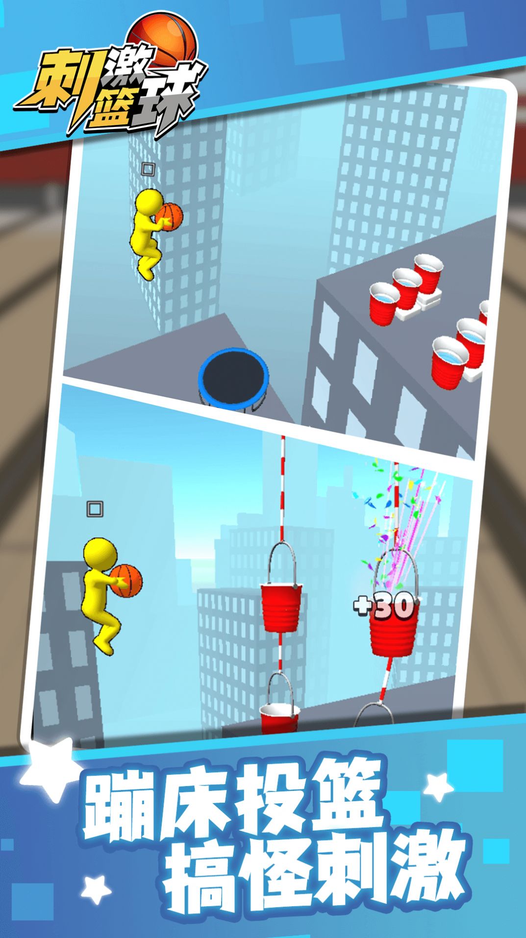 刺激篮球最新手游版手游是一款非常刺激又十分好玩的篮球竞技游戏,游戏中玩家需要控制小人进行投篮。玩家在游戏将进行助跑进行投篮投进的篮筐位置越远得分就越高,关卡中还有蹦床可以使用玩家在蹦床的帮助下还可以进行各种花式扣篮,喜欢的玩家快来下载吧!