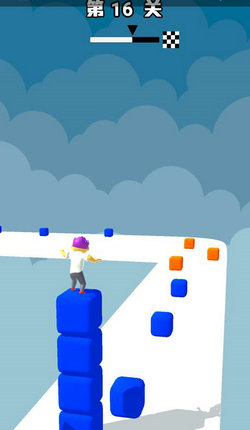 1、路面上有不同高度的正方形,你必须跳过这个场景,沿途收集更多的方块,站起来,通过冲浪向前。