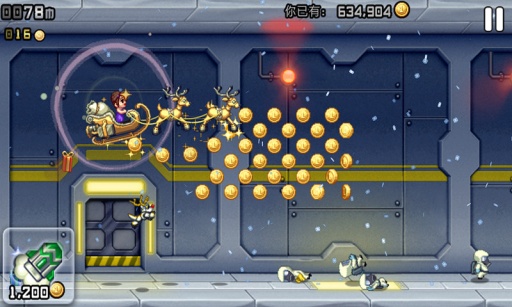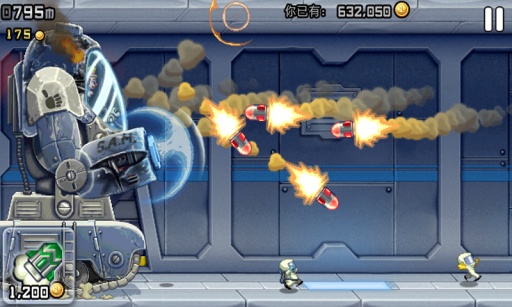 《疯狂喷气机》(Jetpack Joyride)是一款移植自IOS平台上的横版跑酷游戏,游戏主角巴里(Barry)潜入了一座神秘的工厂,夺走了邪恶的科学家们正在研制的个人火箭飞行器,跟着他利用火箭飞行器逃离出这个神秘工厂吧。这也是一款画面华丽的游戏,游戏节奏会随着你获得的各种道具而发生变化,让你在时快时慢的节奏中挑战自己的反应速度和决断力。