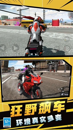 1、驾驶摩托车,在不同的场景中赛跑,避开所有障碍。