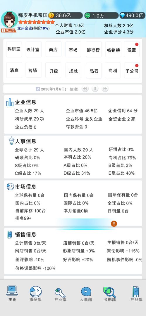 国产手机帝国是一款通过文字进行模拟和经营类玩法休闲游戏,通过国产手机对性能、内存的不断优化,打造最强国货品牌,同时游戏中还支持玩家们对于航空、能源、科技等领域的提升,不断增强自己的实力,感兴趣的玩家赶紧来下载国产手机帝国最新版试试吧。