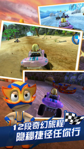 探索恐龙出没的丛林,熔岩喷涌的火山,美丽的海滩和神秘的沼泽。每一个独特的赛道是挤满了隐匿的快捷方式及惊喜。