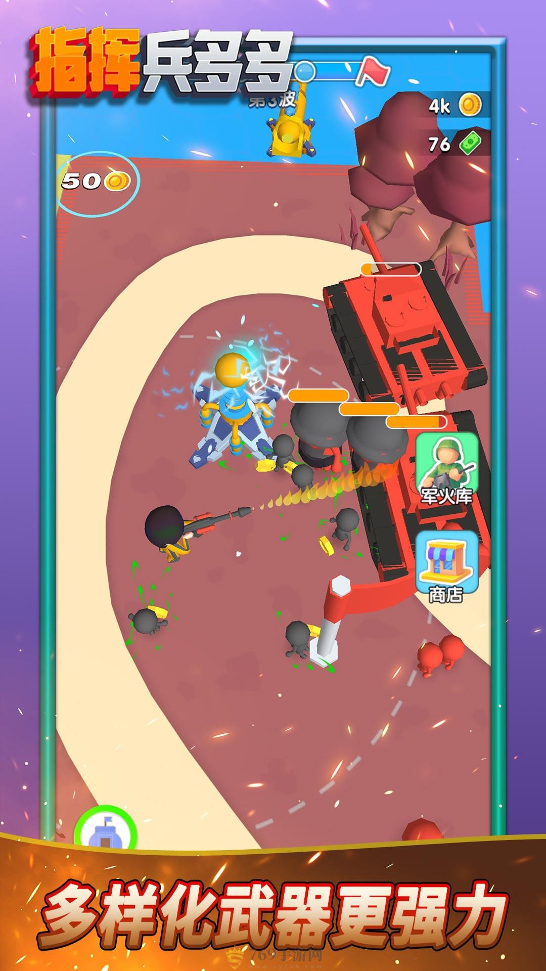 指挥兵多多是一款休闲策略塔防类游戏,你能够加入到这一场趣味的塔防游戏中,控制你的角色不断在场景中布置你的防御,消灭所有来袭的敌人,多种不同的趣味玩法,快来指挥兵多多中尝试。